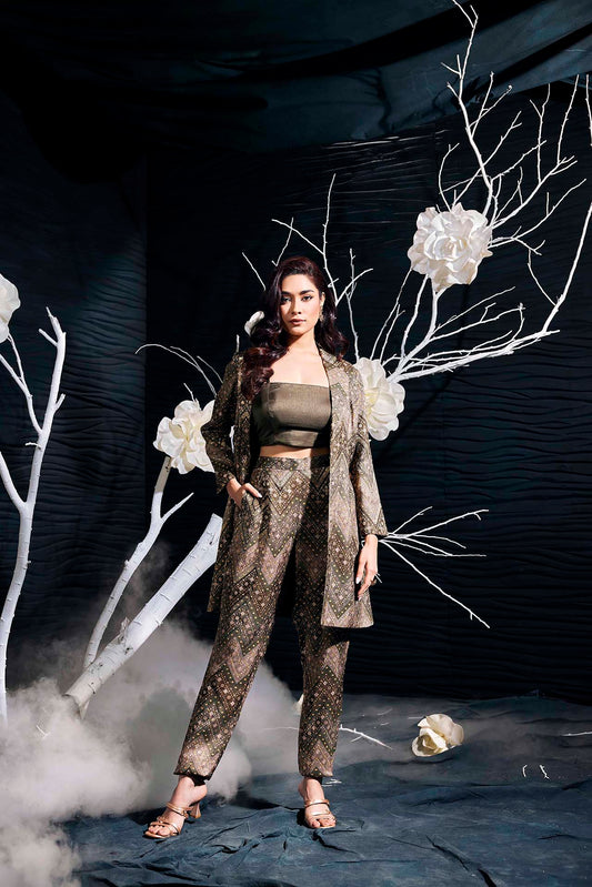 Weaving With Position Print Long Blazer Pant Set