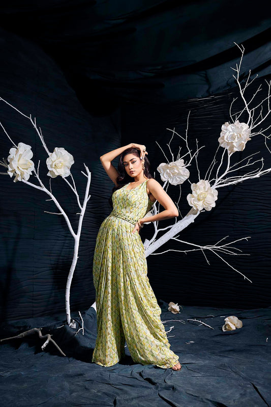 Light Green Printed Chiffon Jumpsuit