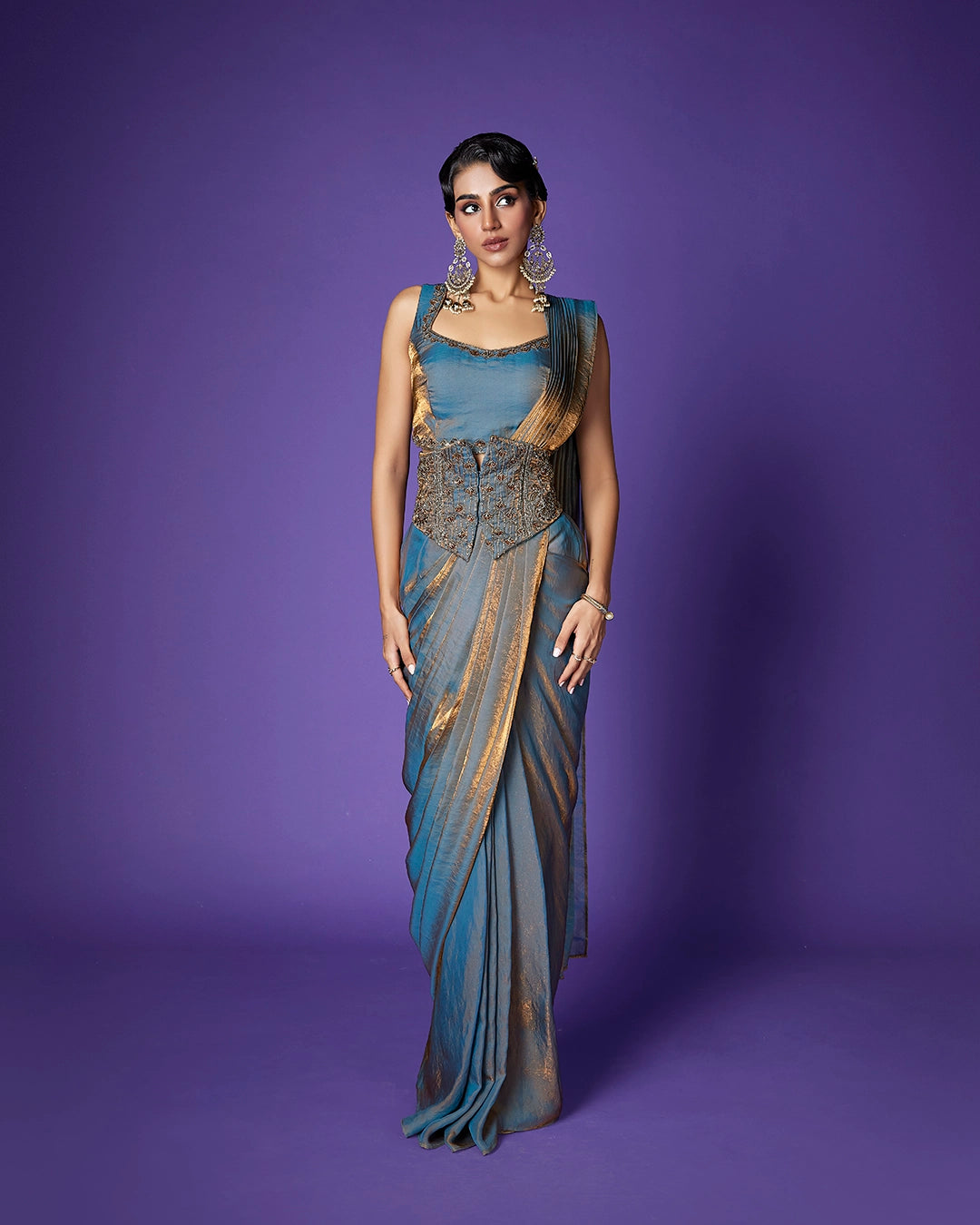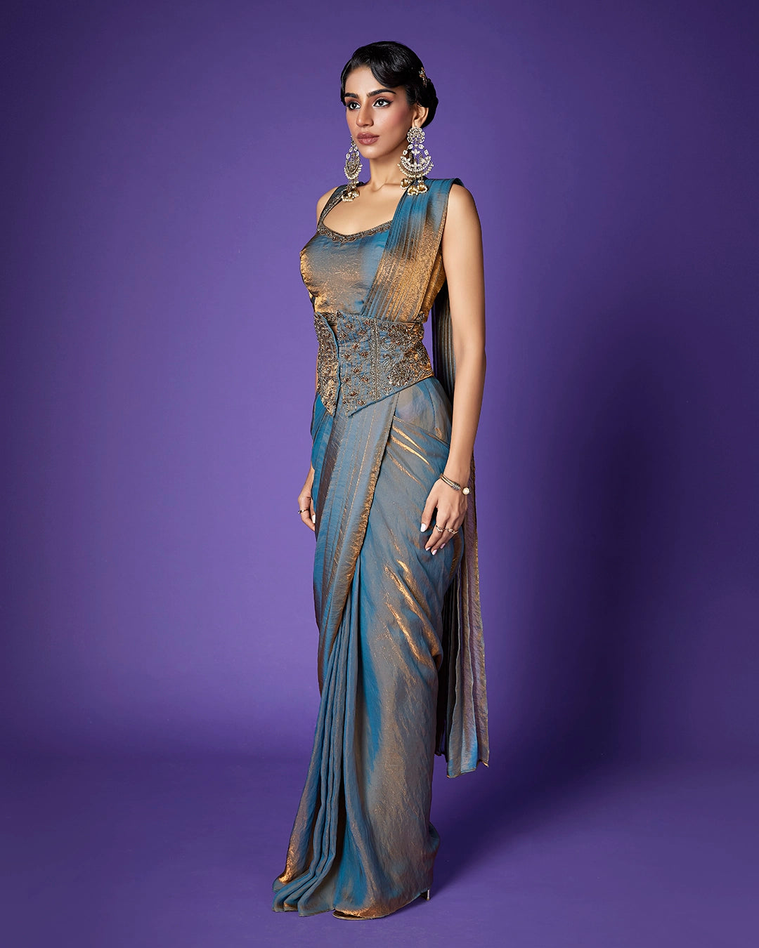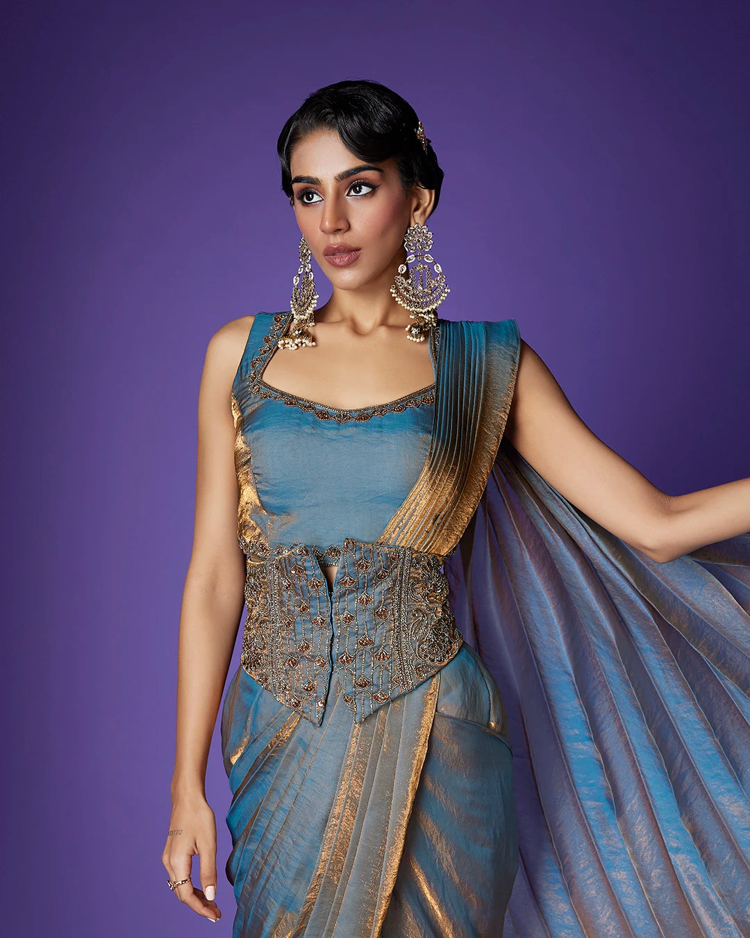 Work - Heavily embroidered corset-style waist belt featuring beadwork, sequins, and stone embellishments.