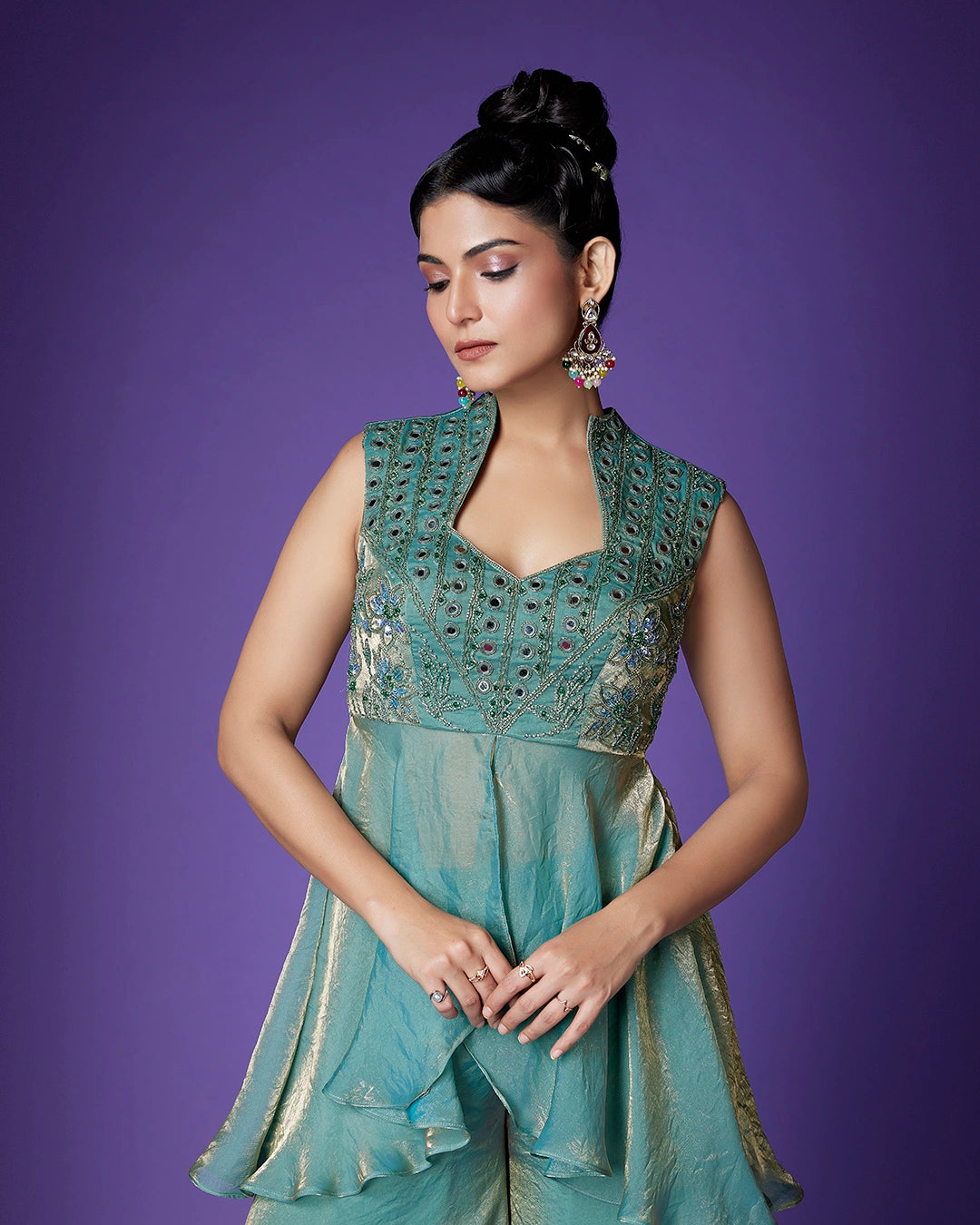 Work - Mirror work (abhla), beads, and sequin embellishments on the Bodice