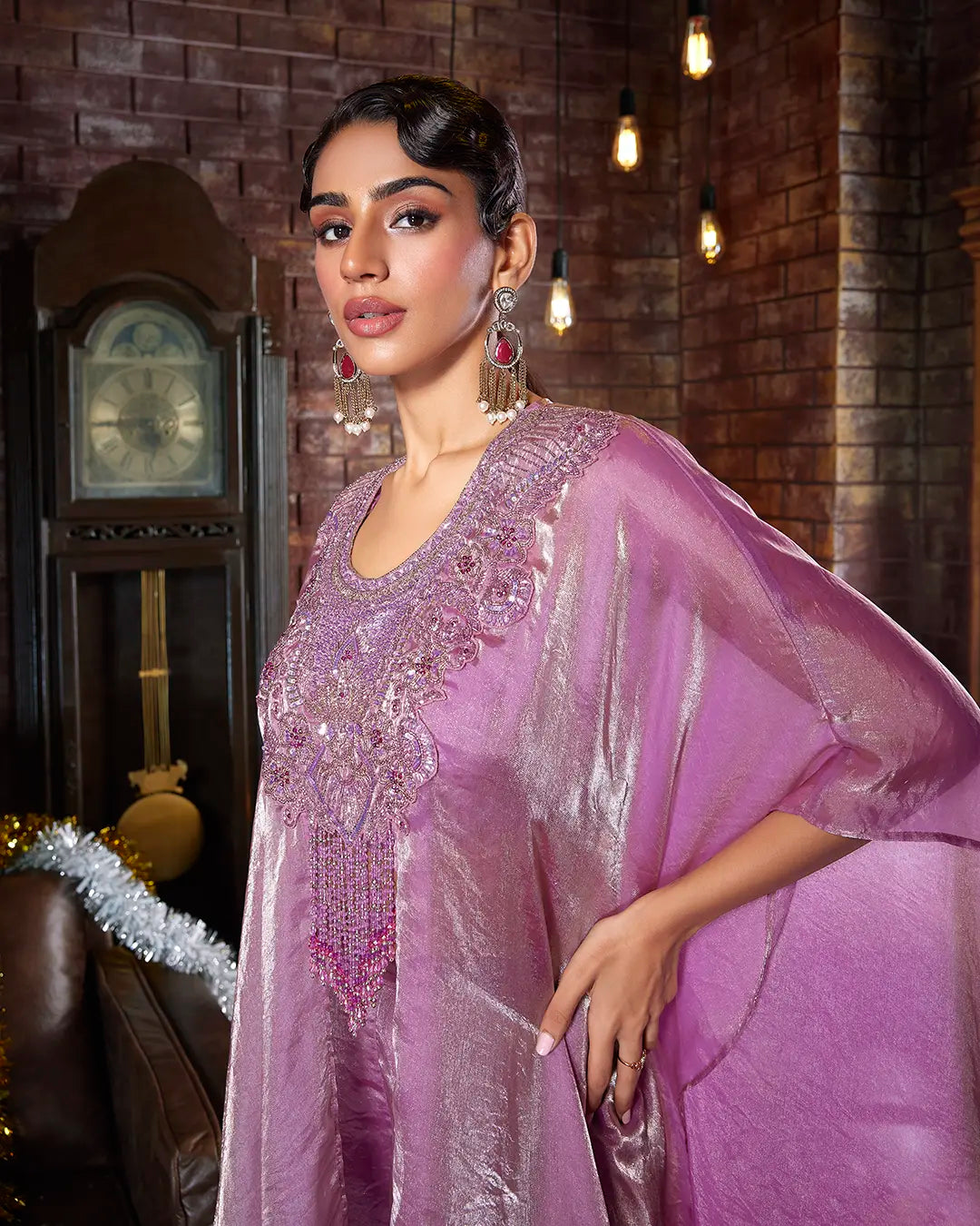 Work - Heavy handcrafted embroidery with zari, resham, sequins, and beadwork on the yoke & Tassels.