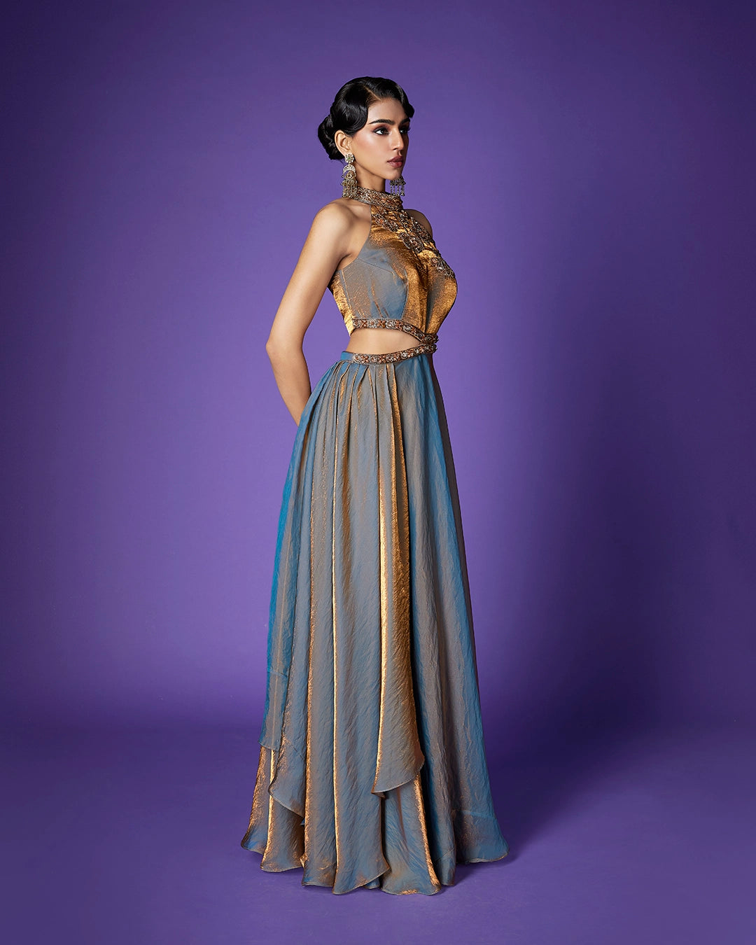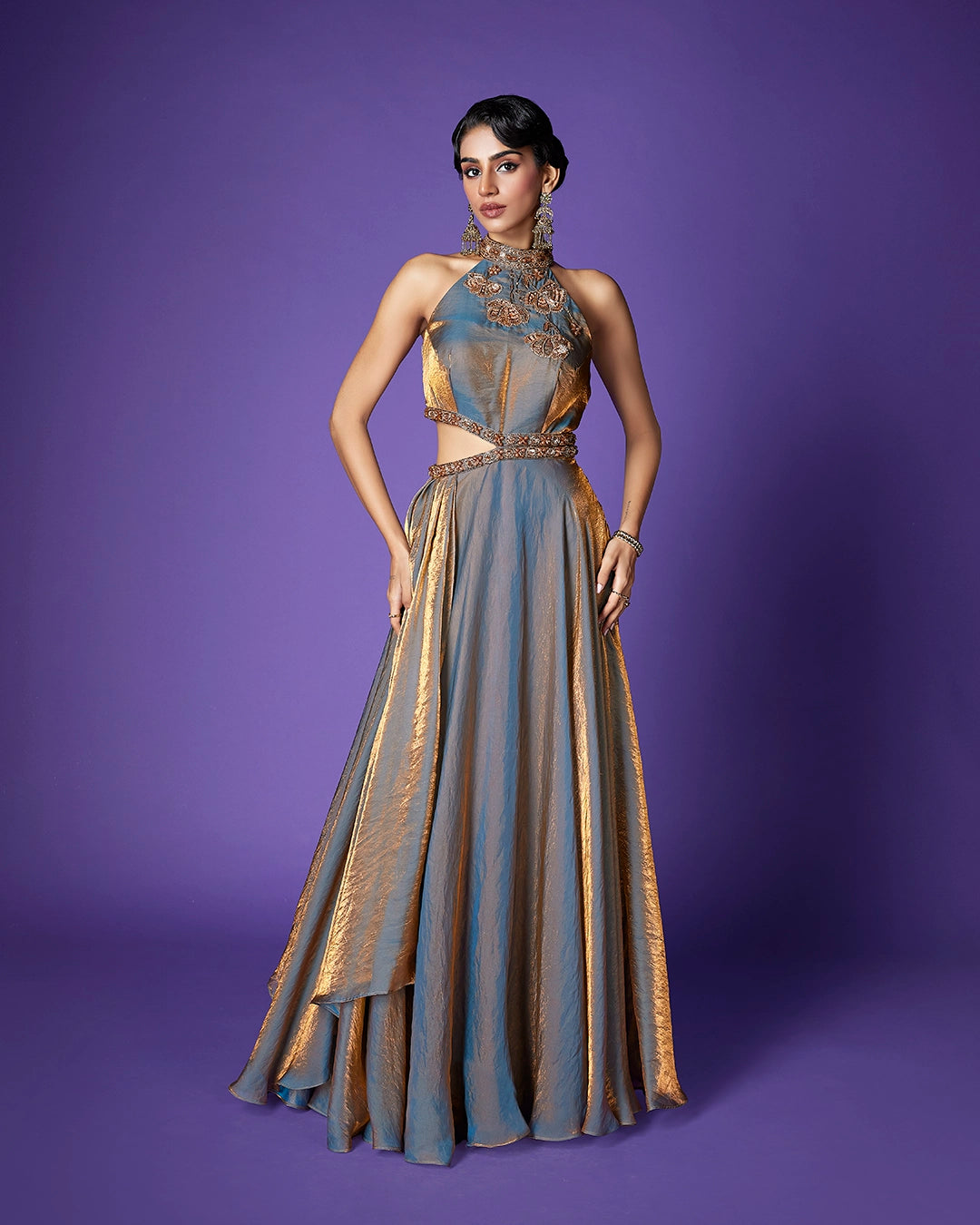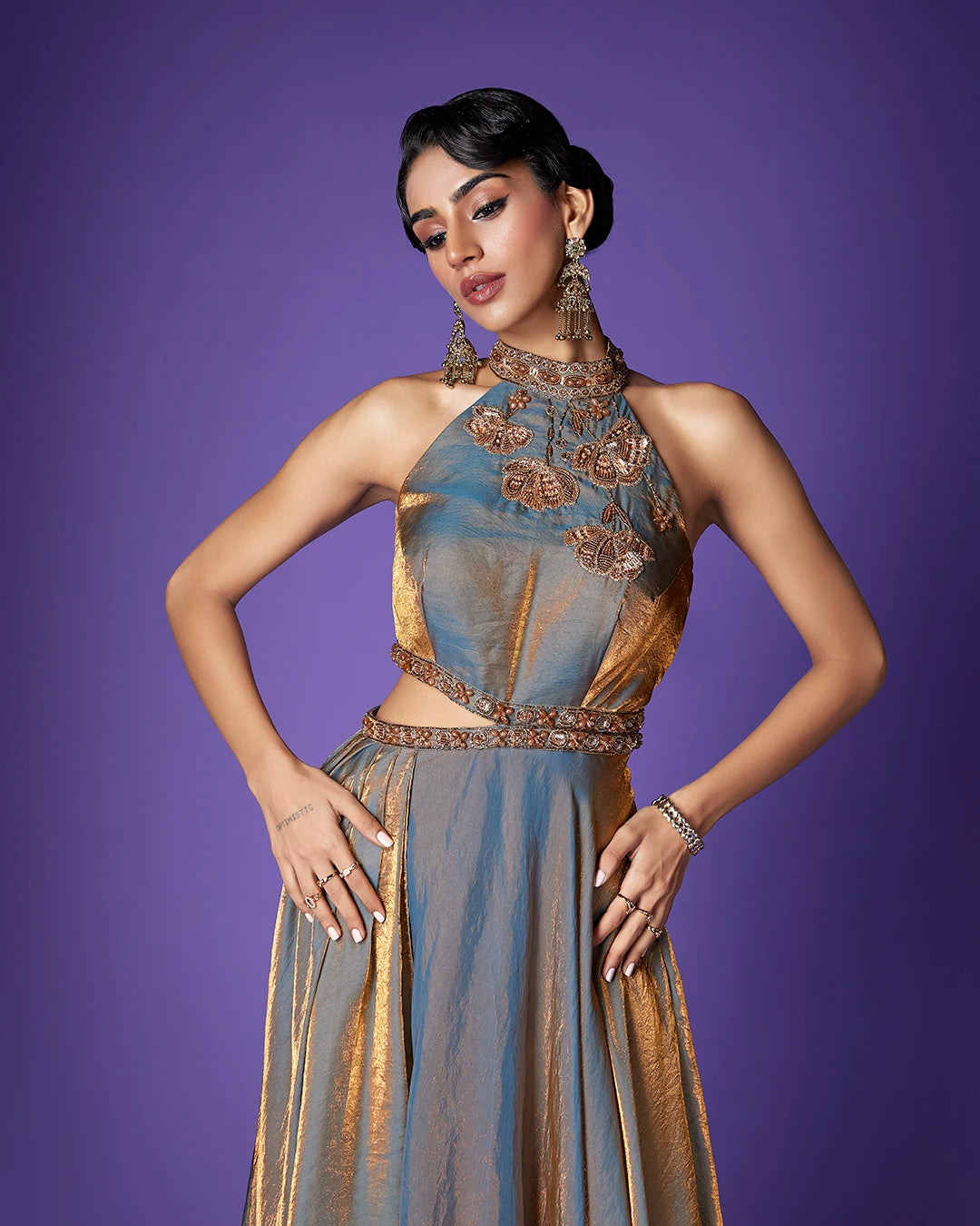 Work - Intricate floral & leaf inspired motif with sequins & small stone highlights.