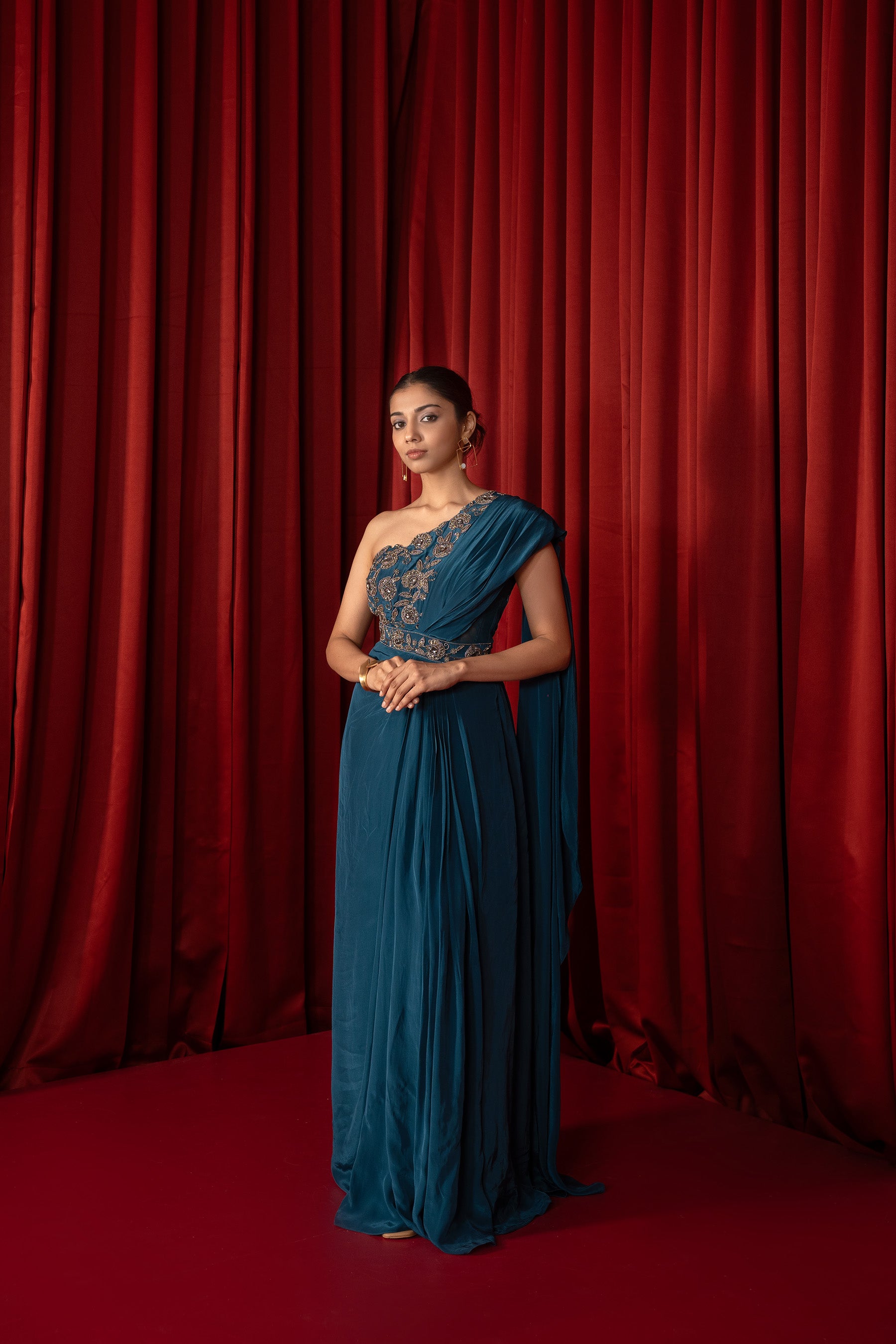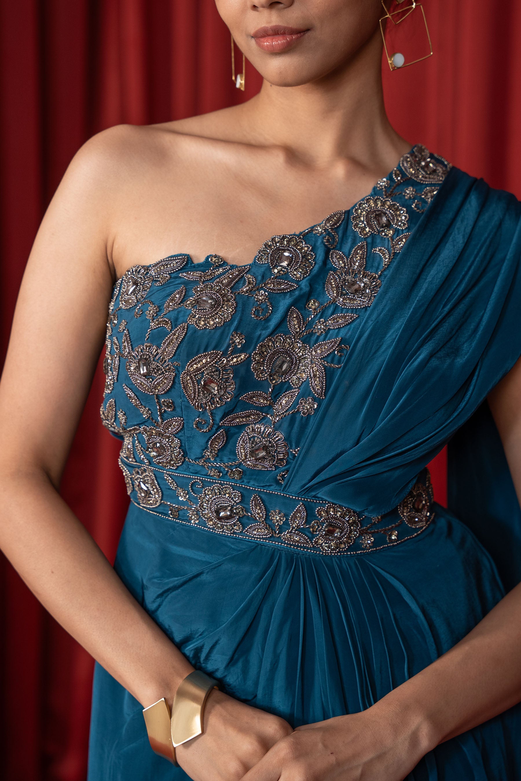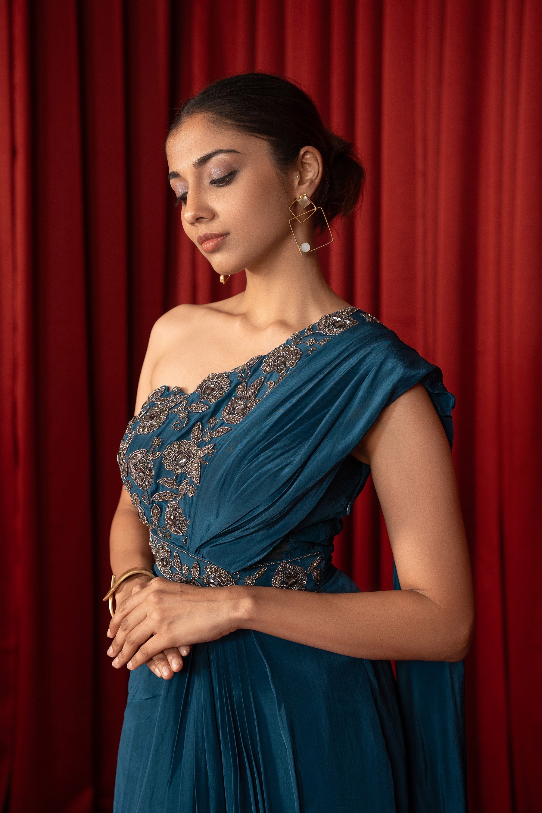 • Work: Intricate floral sequin embroidery on pallu and waistband