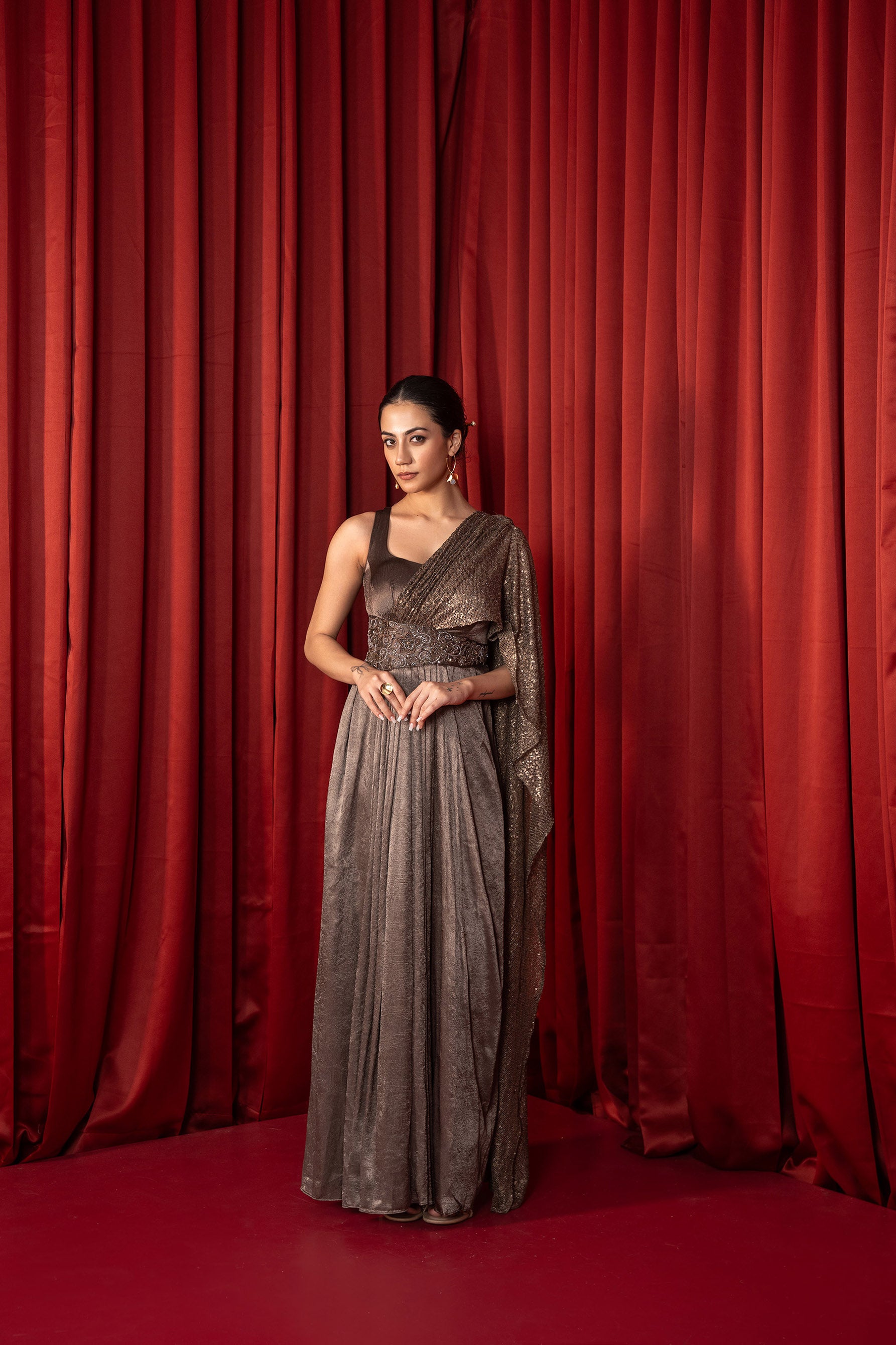 Work - Intricate bead and thread embroidery on waistband and draped pallu