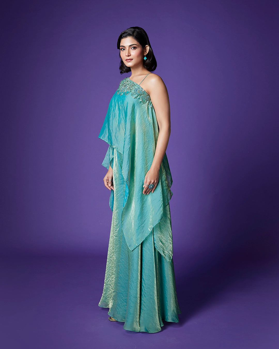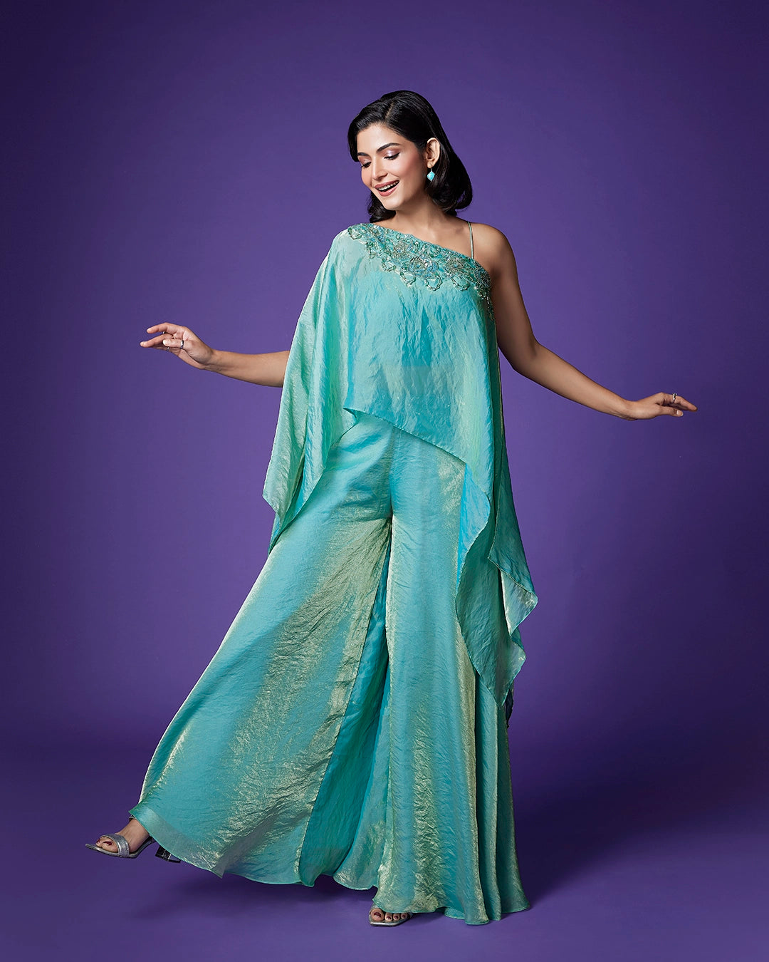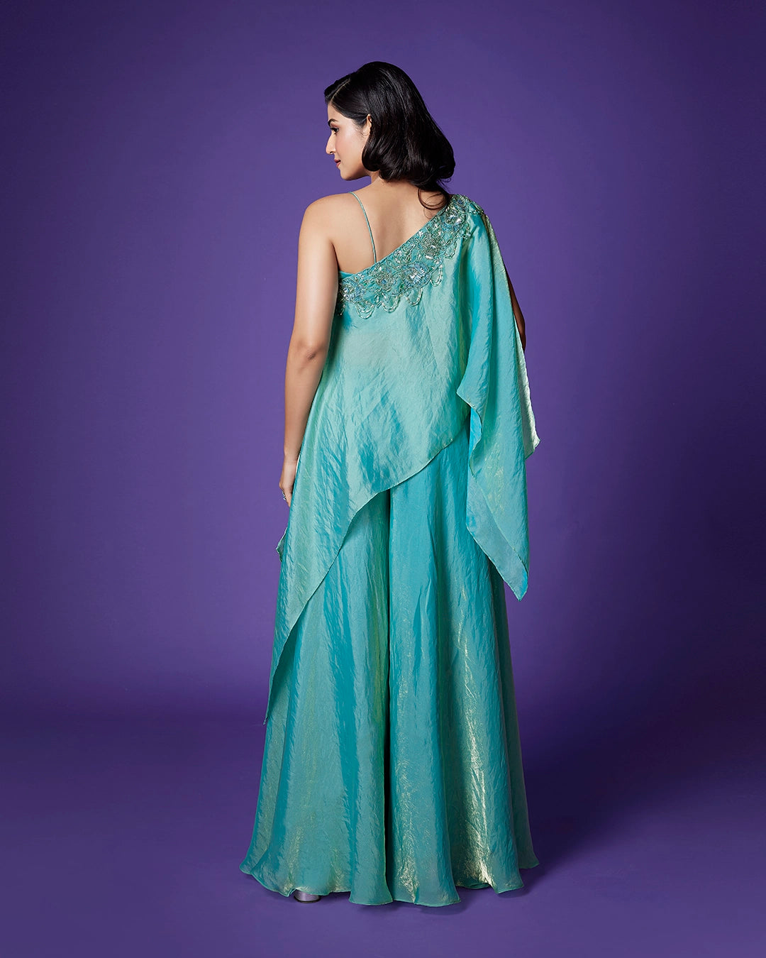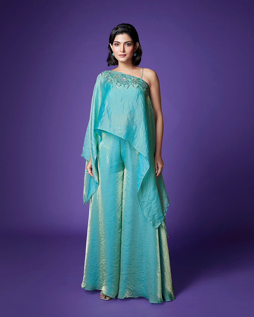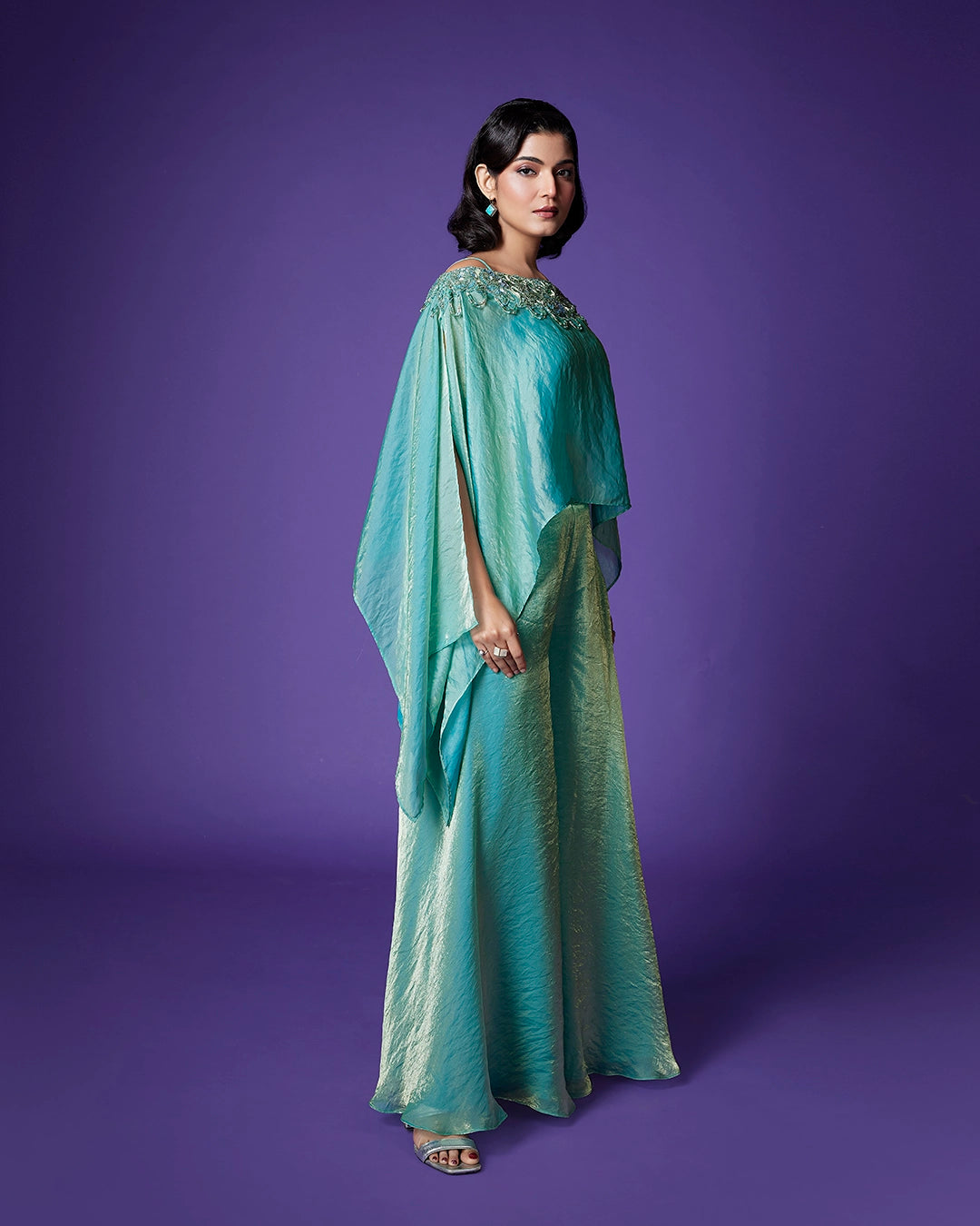 Work - Intricate embroidery with Tassels applique floral work along the neckline border.