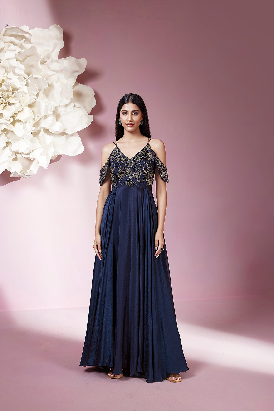 Work - Intricate self and grey sequin and thread embroidery on the bodice