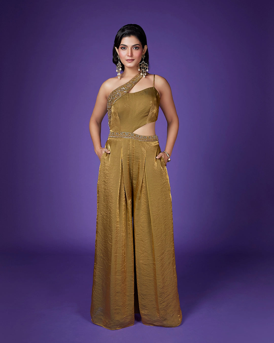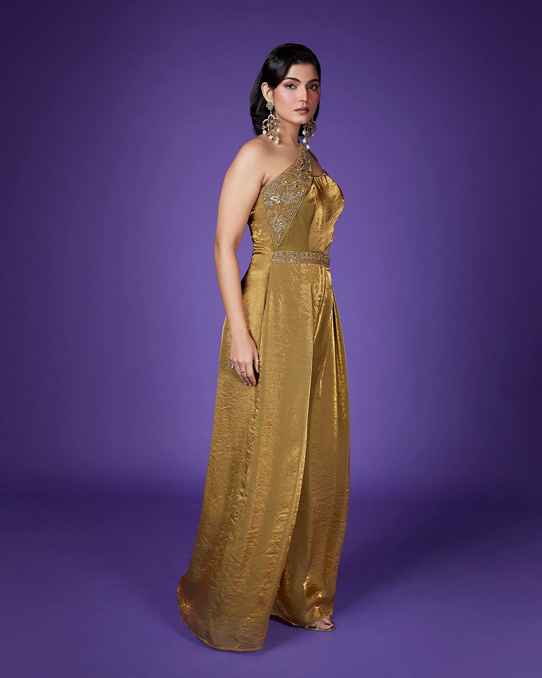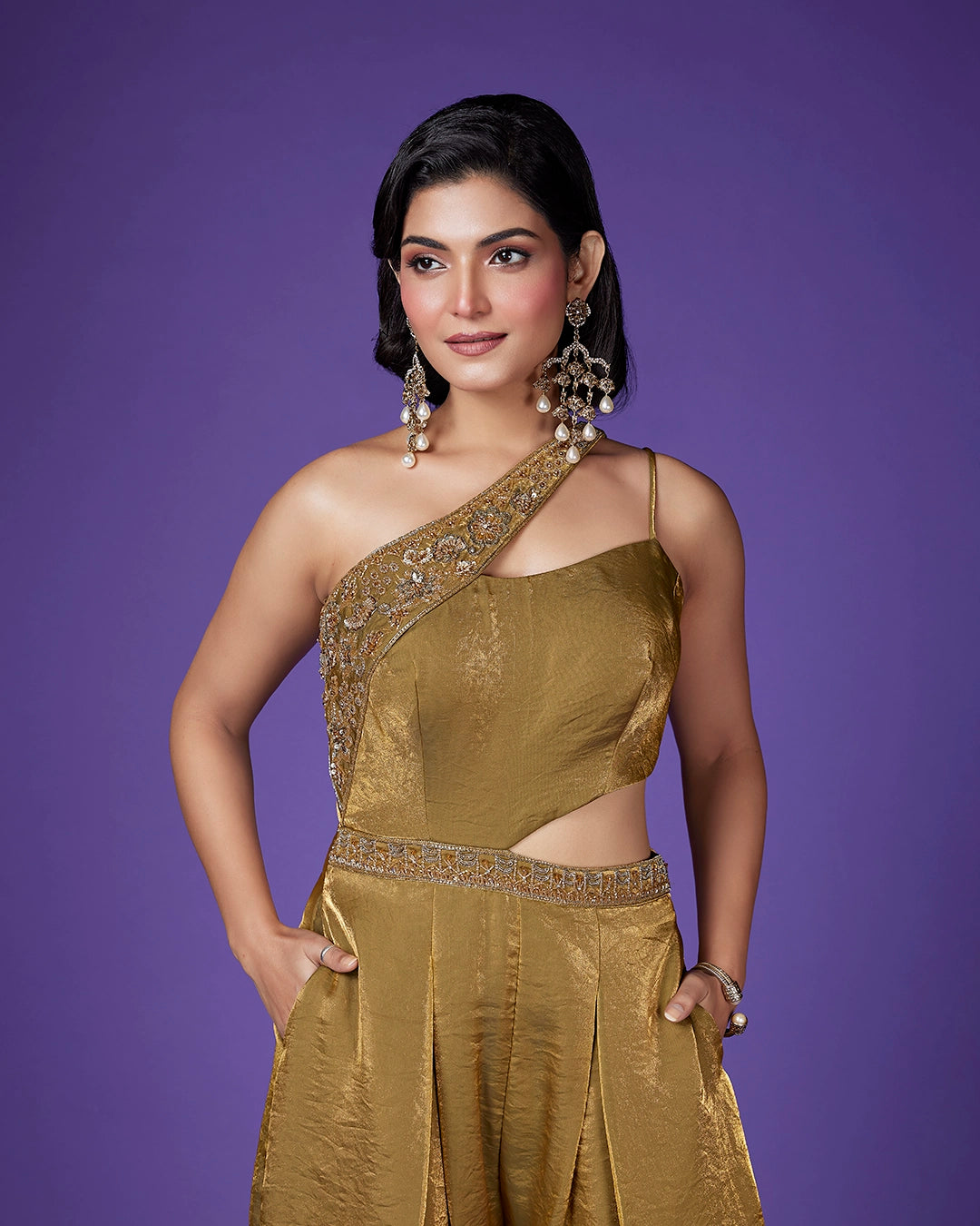 Work - Hand embroidery with zari & beadwork on the shoulder panel & waist band