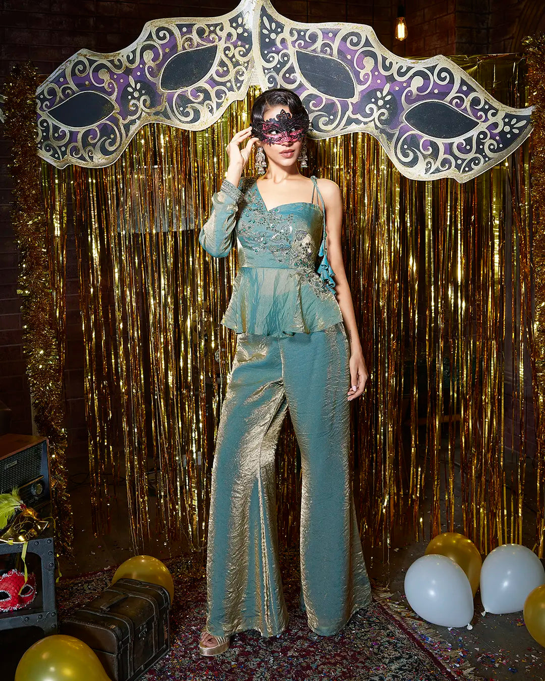 Neckline – Asymmetrical sweetheart neckline with one-shoulder design