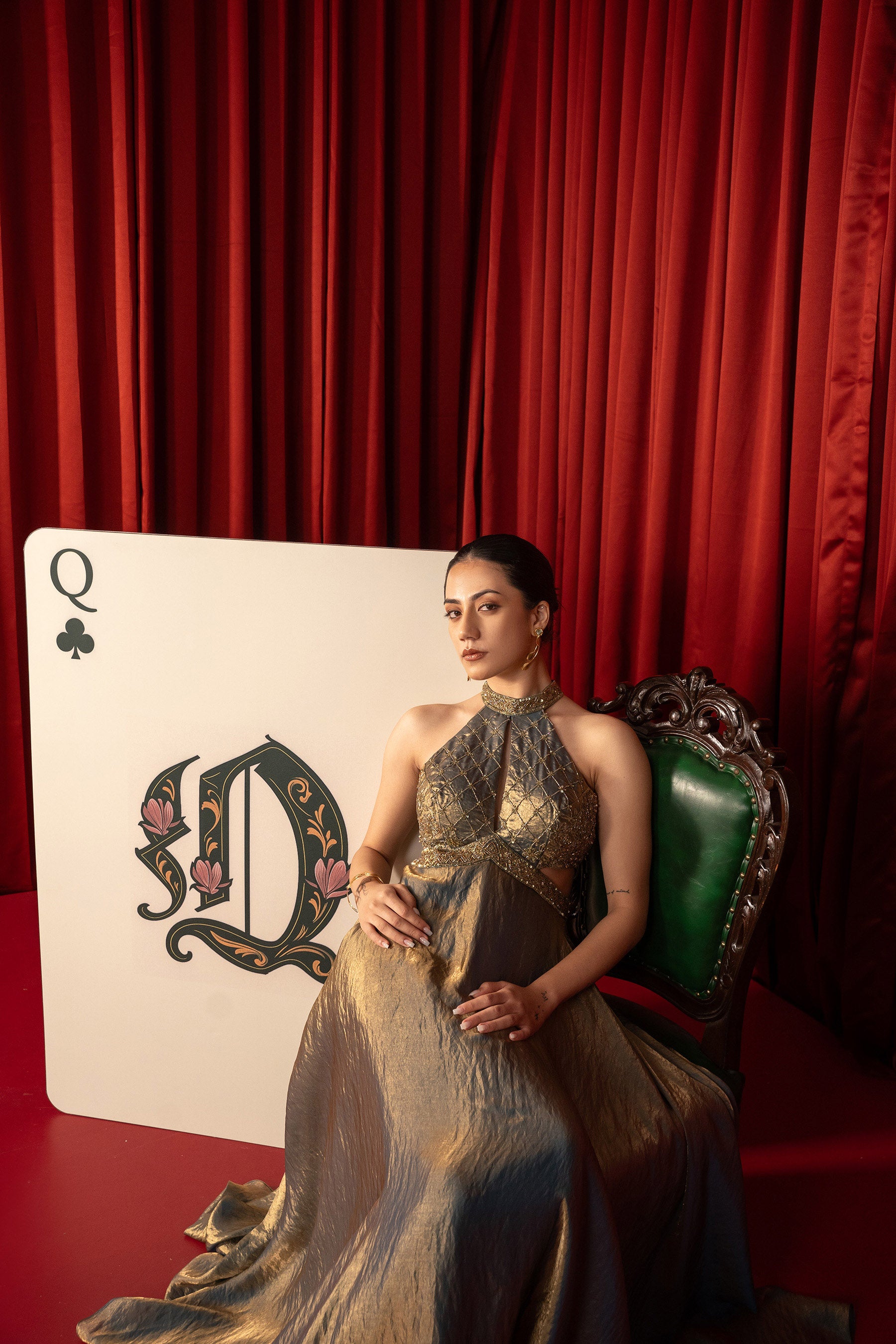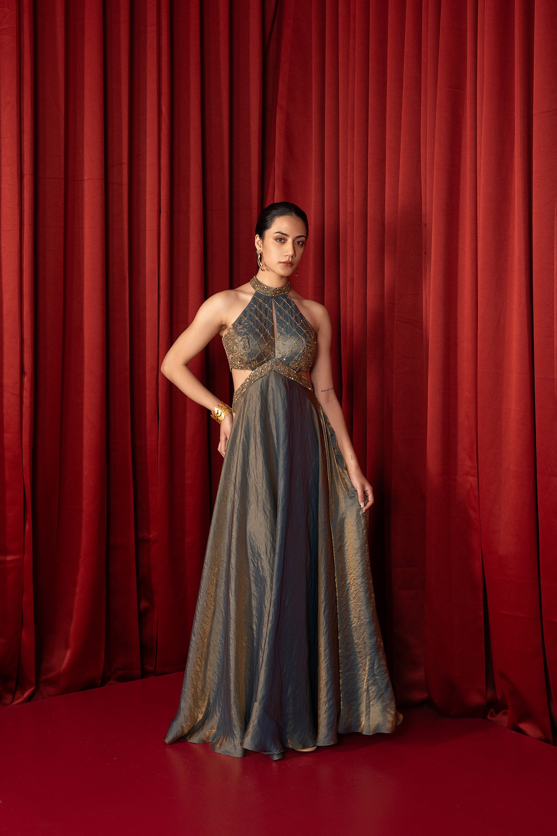 Work - Intricate sequin and thread embroidery on bust and neckline with cut-out detailing